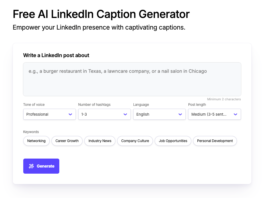 Empower your LinkedIn presence with captivating captions.