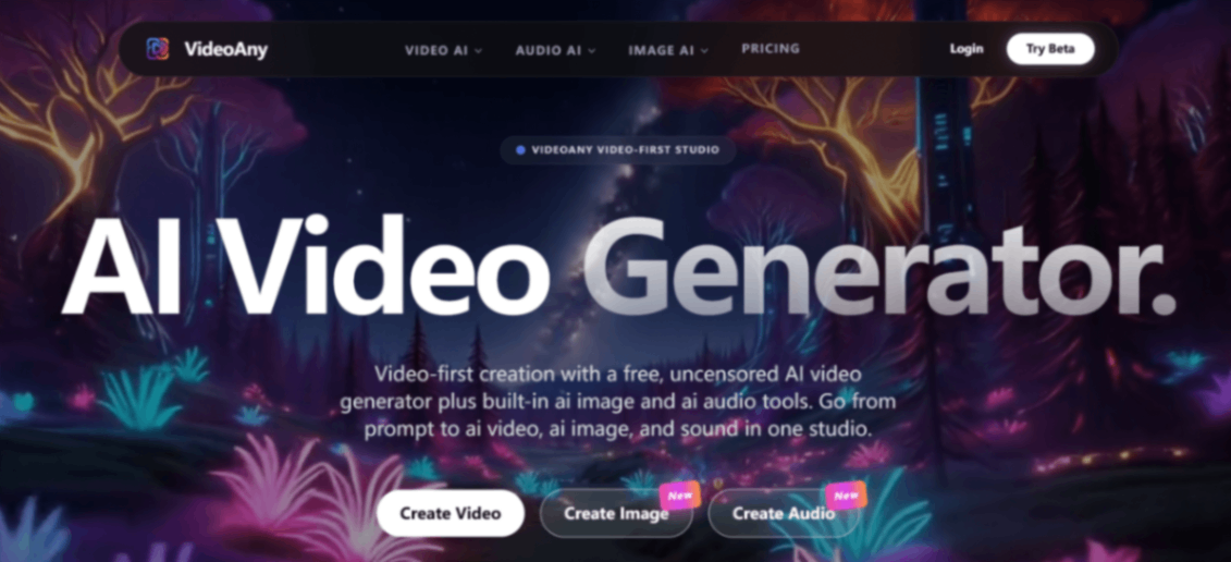 Video-first creation with a free, uncensored AI video generator plus built-in ai image and ai audio tools. Create with creative freedom and minimal filtering, backed by responsible-use guidelines.