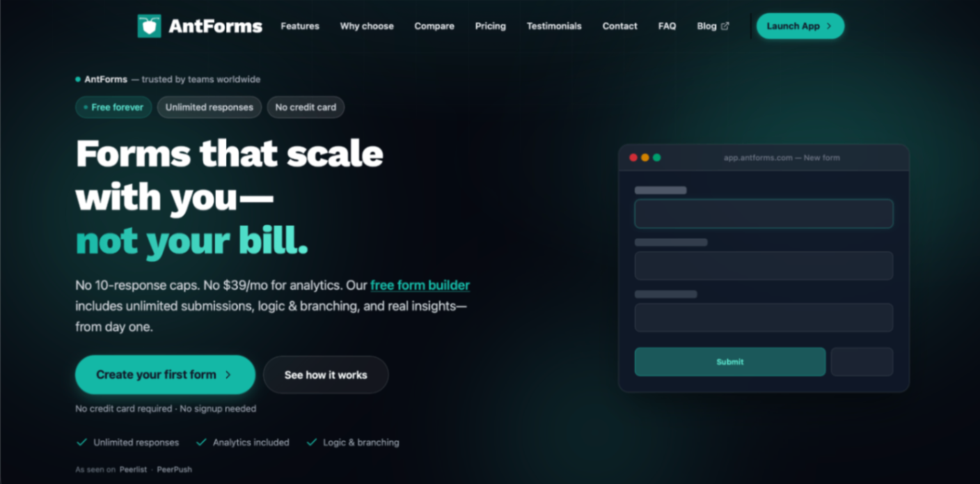 Unlimited free submissions + free analytics + integrations + AI + fastest support