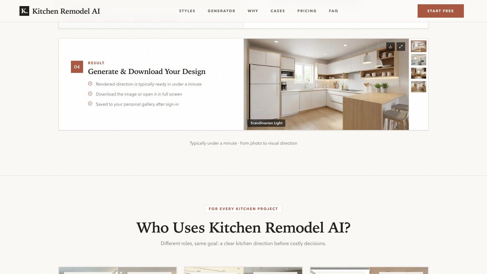 Upload one kitchen photo and explore 30+ layout-preserving kitchen design directions.