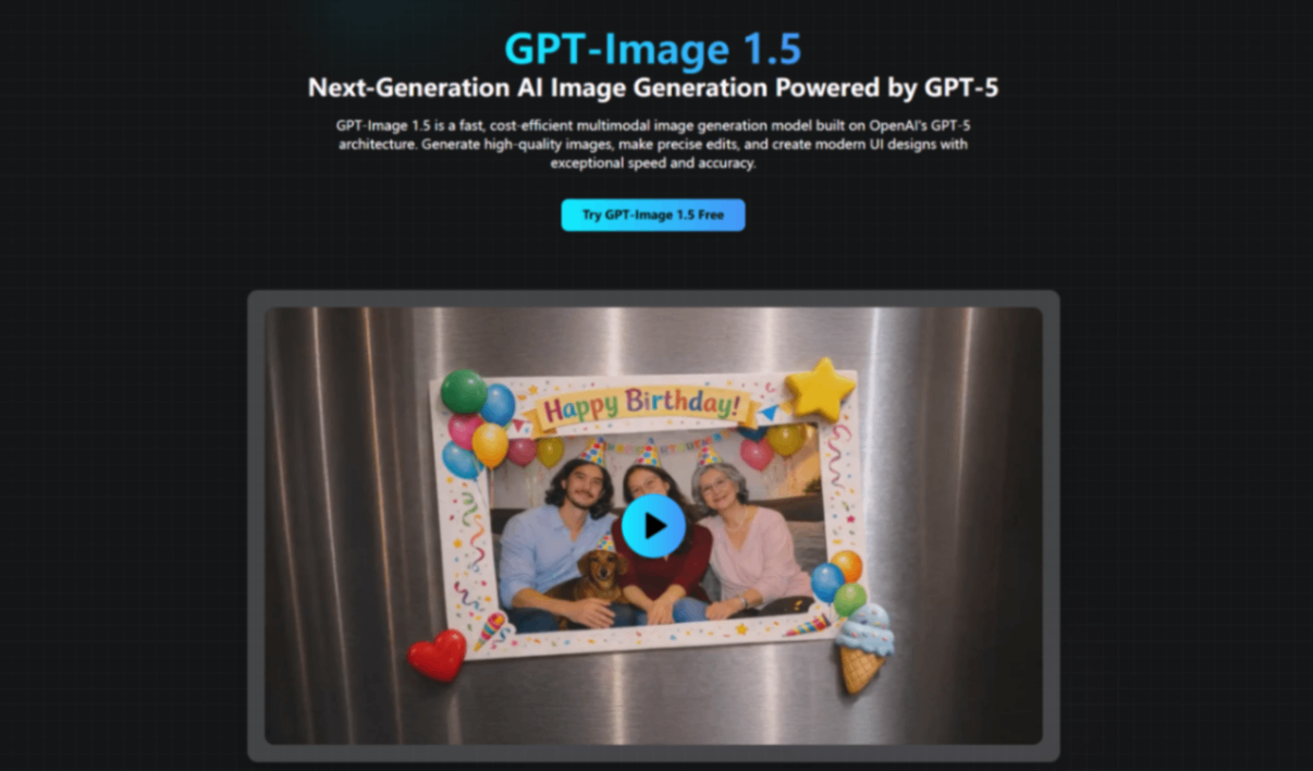 GPT-Image 1.5 is a cost-efficient AI image generation model powered by GPT-5. Create high-quality visuals, precise edits, and UI designs up to 4× faster.