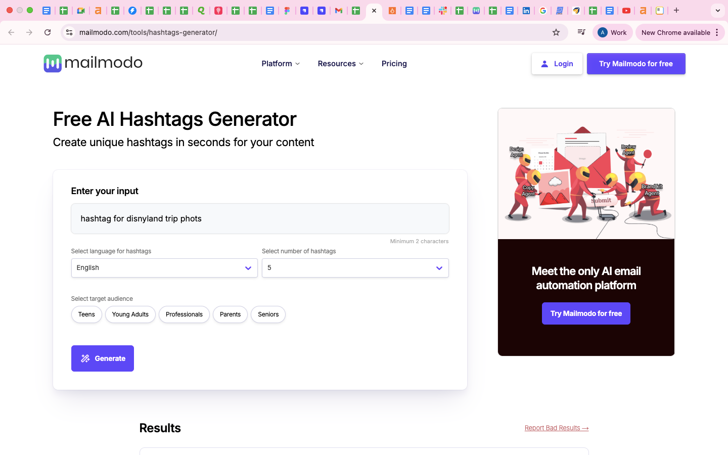Mailmodo's Free AI Hashtag Generator is a powerful tool designed to amplify your social media reach by instantly creating relevant and trending hashtags based on your content's context.