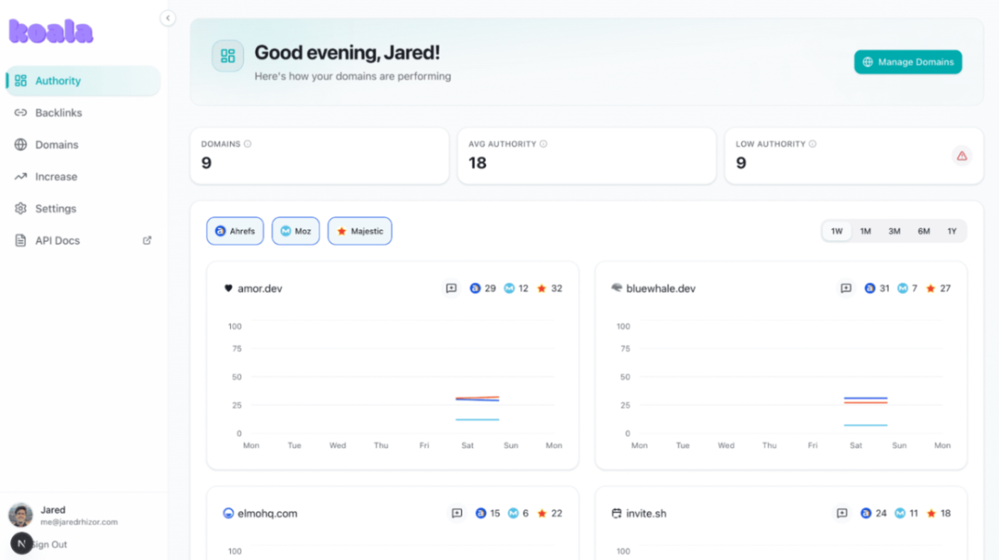 Track Ahrefs, Moz, and Majestic domain authority metrics in one unified dashboard and boost your ranking with automated directory submissions.